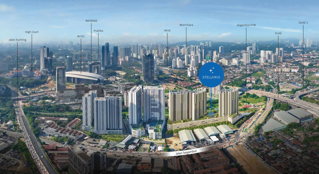 Discover Stellaris @ Riana Dutamas, a freehold serviced residence in Mont Kiara North offering spacious layouts from 1,040 to over 2,000 sq ft, including dual-key options. Strategically located next to MITEC and KL Metropolis, it features resort-style facilities across 2 acres and a secure 3-tier security system.
